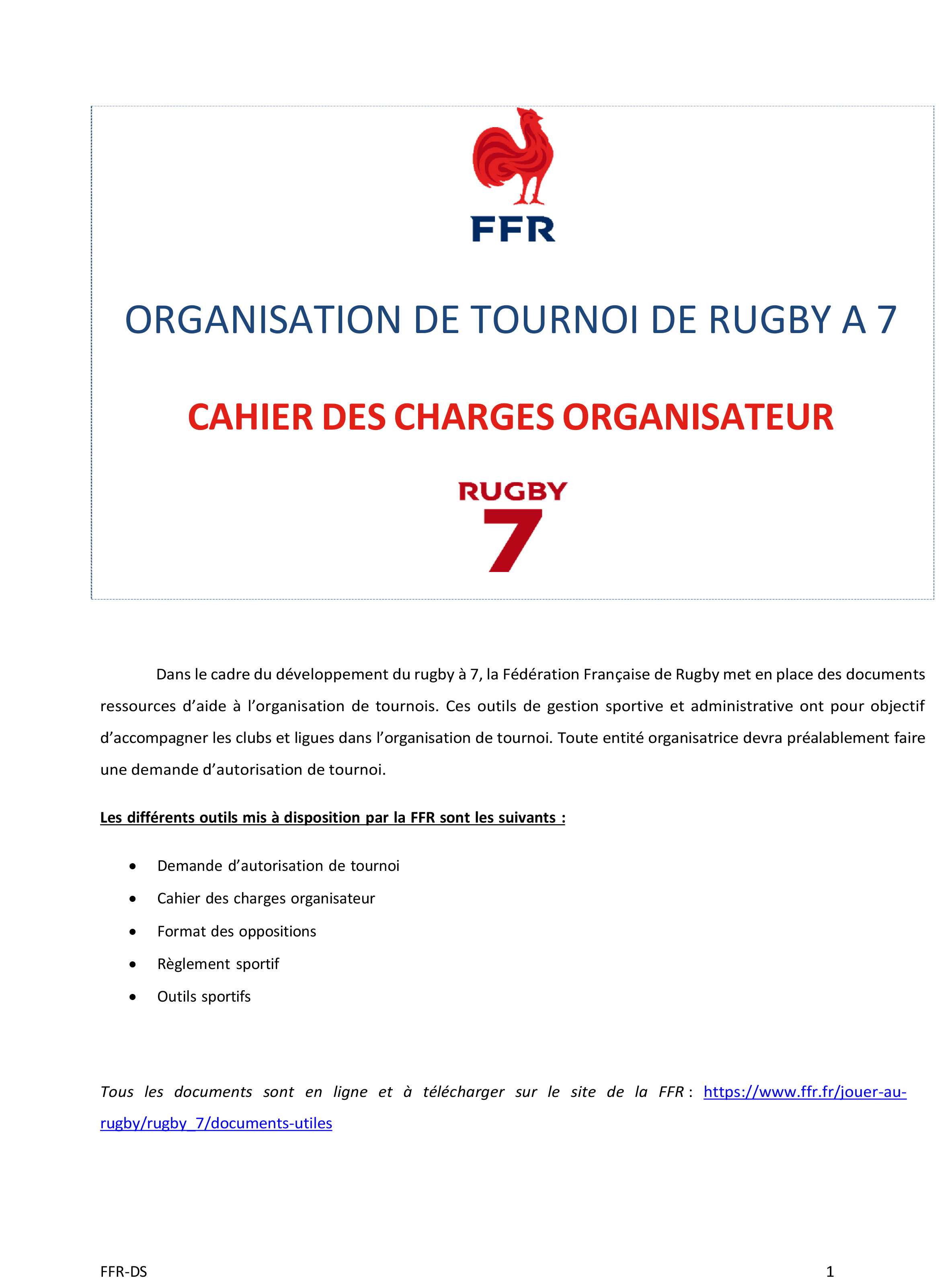 CAHIER DES CHARGES ORGANISATION DE TOURNOI RUGBY À 7 (FÉVRIER 2026)