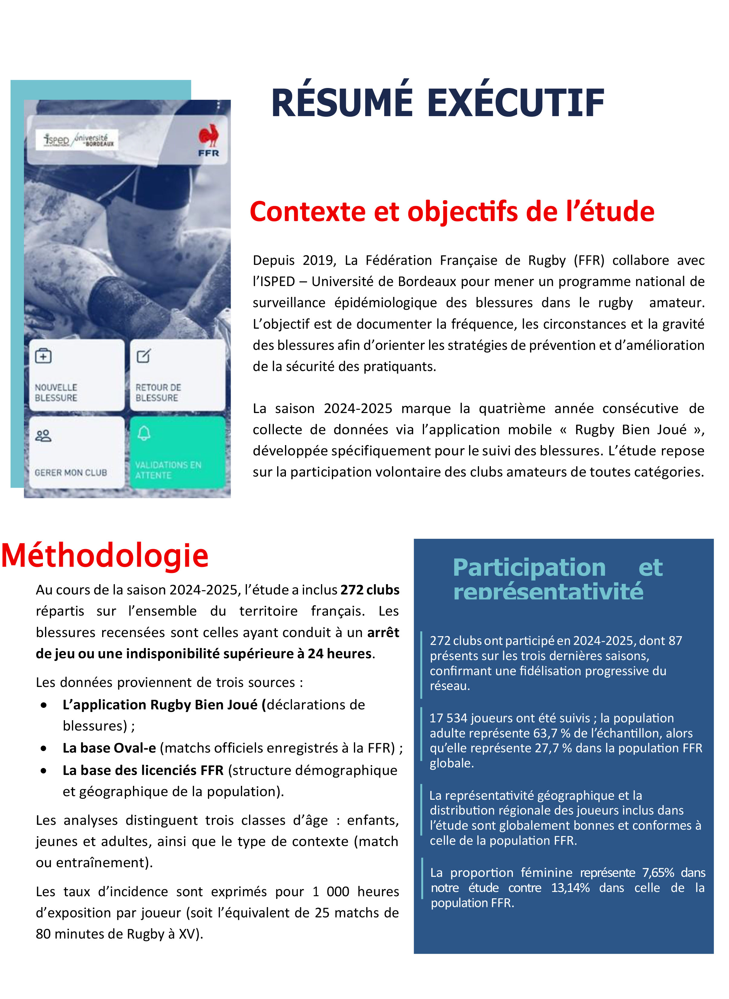 RAPPORT 2024-2025 SUR L ÉPIDÉMIOLOGIE DES BLESSURES LIÉES À LA PRATIQUE DU RUGBY AMATEUR
